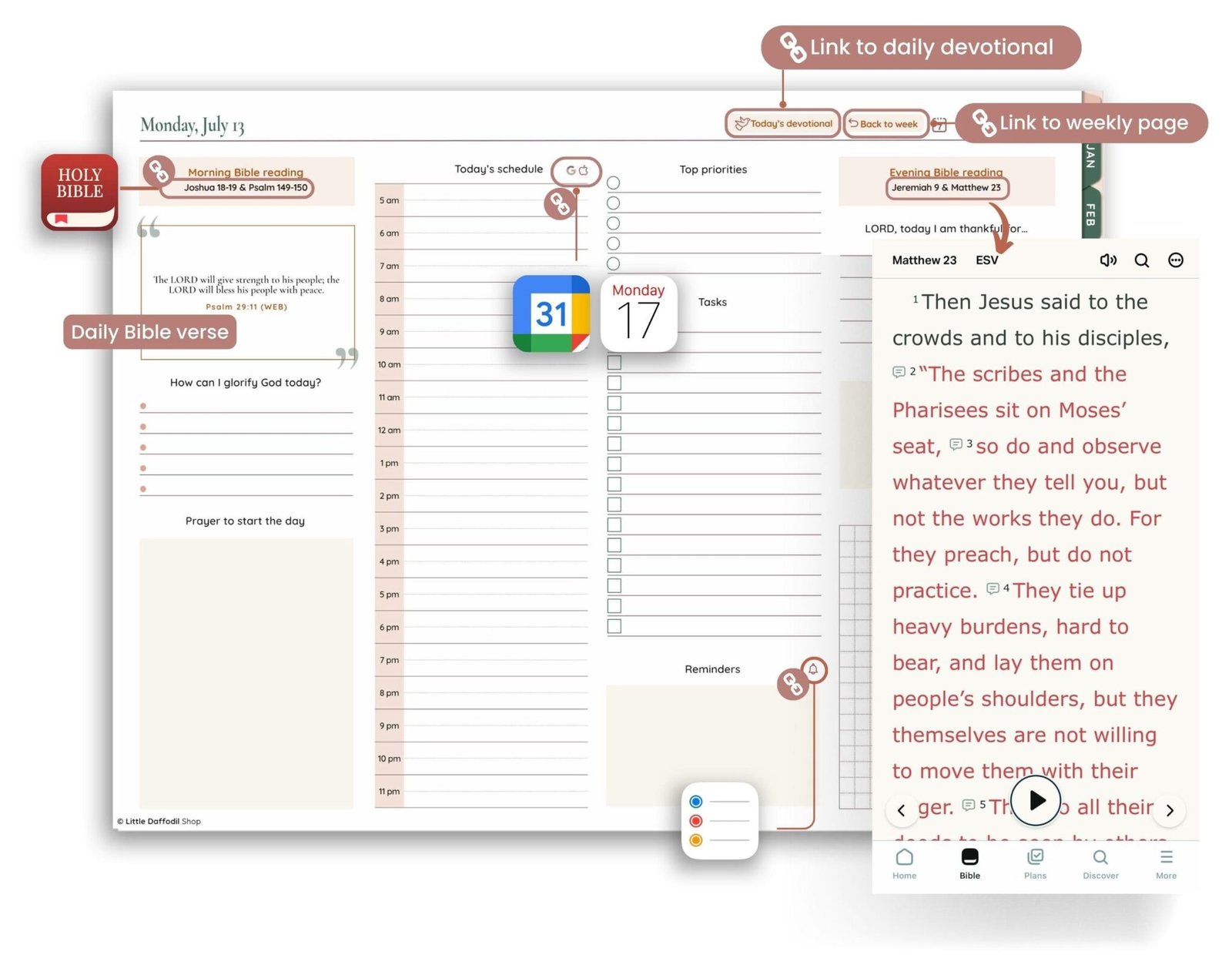 Our Christian Digital Planner is intentionally designed around this biblical mandate, featuring the daily M’Cheyne Reading Plan, dedicated prayer sections, and a daily devotional.