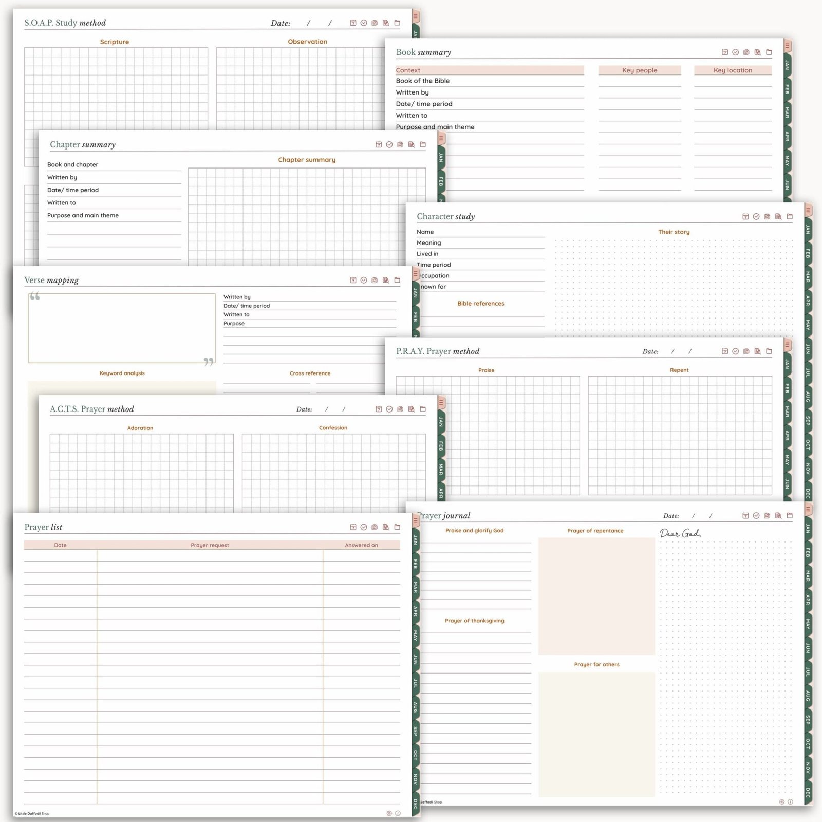 The 2026 Christian Digital Planner also includes a wide variety of templates to deepen your understanding of Scripture and your prayer life.
