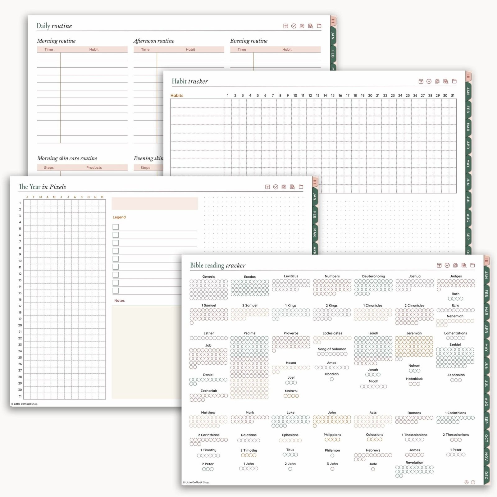 - Bible reading trackers and other tracker templates